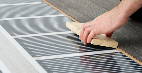 Jeg fikk lagt varmefolie da jeg isolerte en glassveranda. Det ble lagt gips under folien, parketten oppå. Termostaten er sperret til 27 grader eller noe sånt for at ikke parketten skal bli skadet. Funker som bare det.